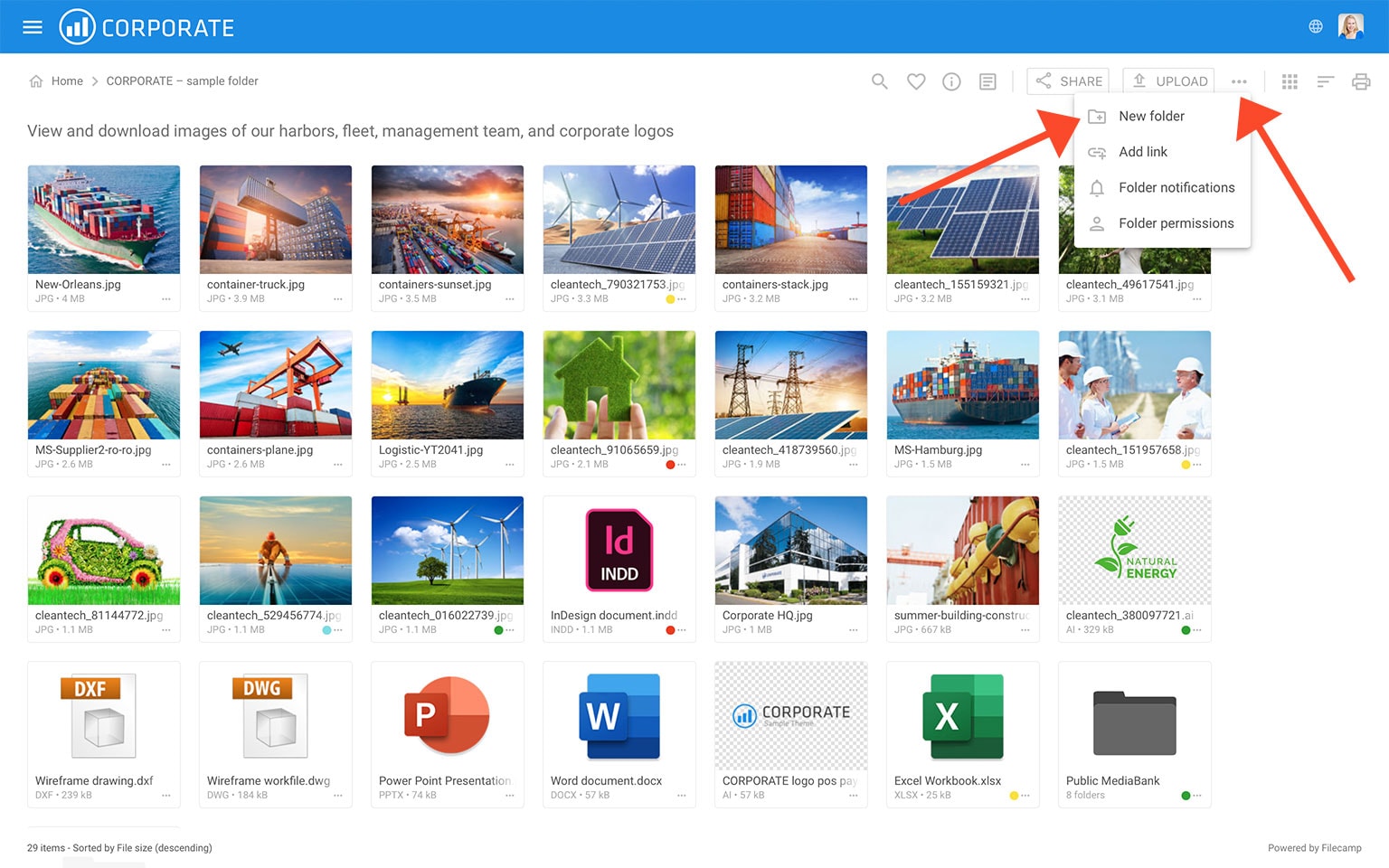 Organize your files in folders just as you would on your local computer. Create all the folders you like and manage access to each folder.
