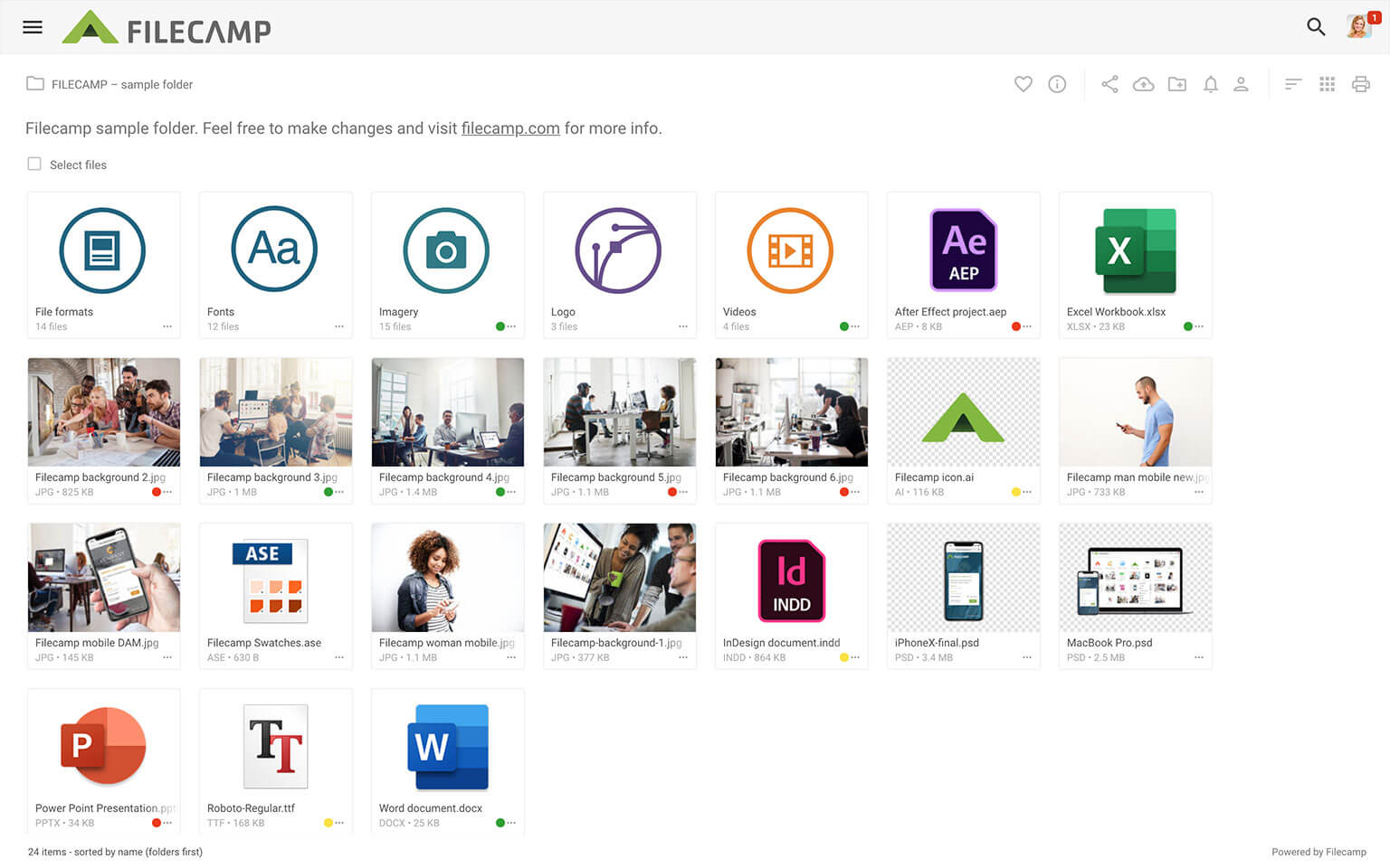 Customize your Filecamp account to reflect your company brand. With Filecamp Advanced and Professional plans, you can utilize multiple Themes within the same account.